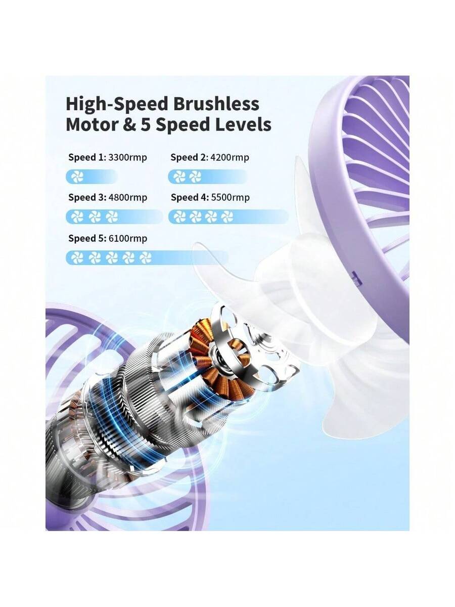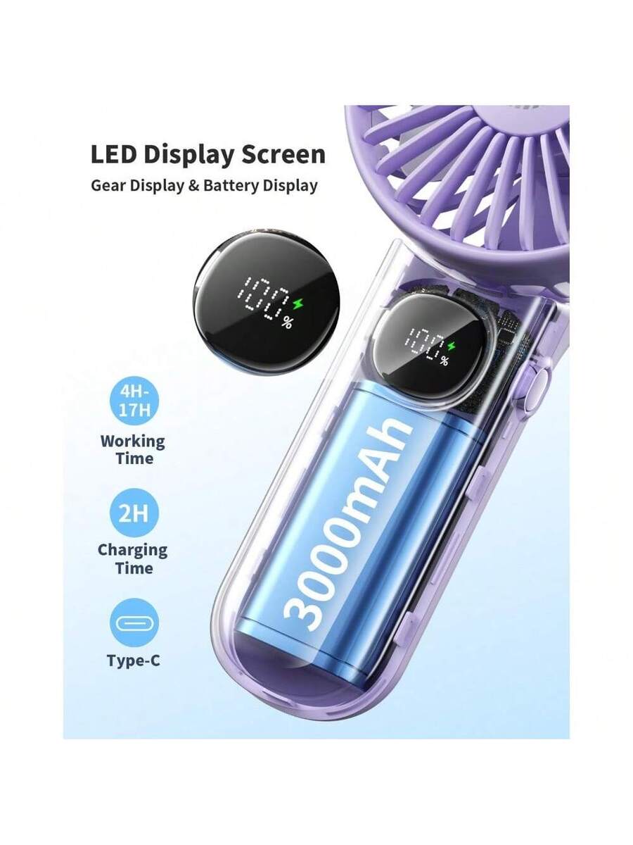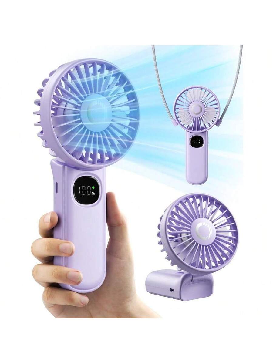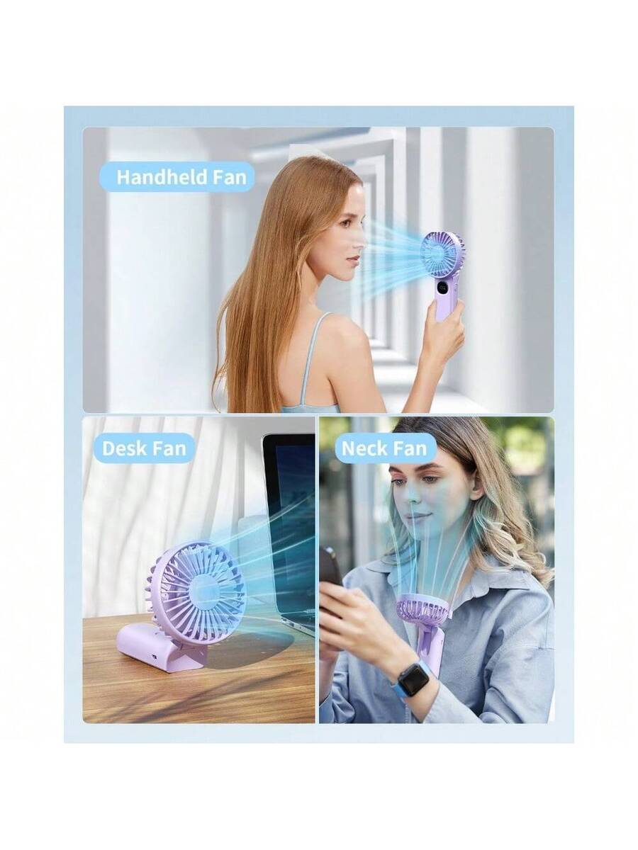 Purple 3-in-1 Portable Fan – 3000mAh, Handheld/Neck/Desk